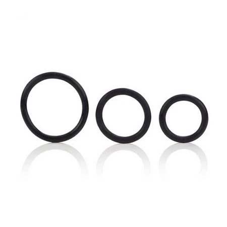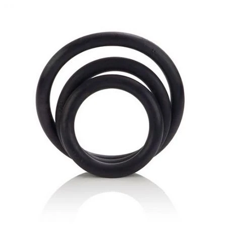 This basic set of three rubber cock rings are stretchy enough to be worn comfortably, but firm enough to be effective.