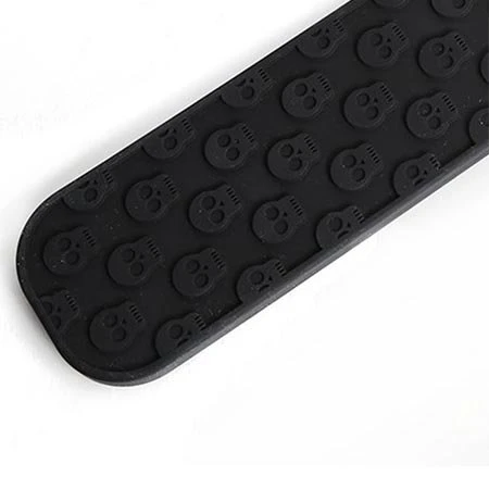 The Spank Paddle is made from 100% soft touch silicone with a sleek finish. The flexible Spank is rectangular shaped with rounded edges and a design featuring raised skulls that temporarily imprint into the skin upon impact.