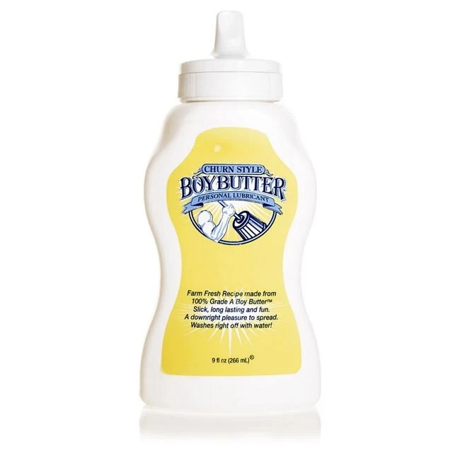 Boy Butter is an oil-based lubricant** that contains coconut oil and a silicone compound commonly found in hair conditioners. The ingredients are homogenized to feel like butter and the end result is a creamy, long-lasting personal lubricant. Made in the USA.