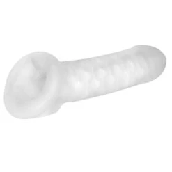 This sheath can add about 1/2-inch of overall girth. The outside of the sheath is smooth, and the inside is textured to provide sensation to the wearer. Also great as a masturbation sleeve for solo play!
