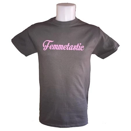 Screen printed on Gildan 2000 shirt, charcoal with light pink ink.