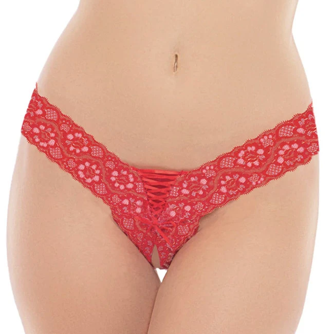Indulgence Lace Up Crotchless Thong 1158, Red