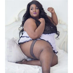 Black fishnet thigh-highs with a no-slip grip.ย Available in 4 sizes, A-D.
