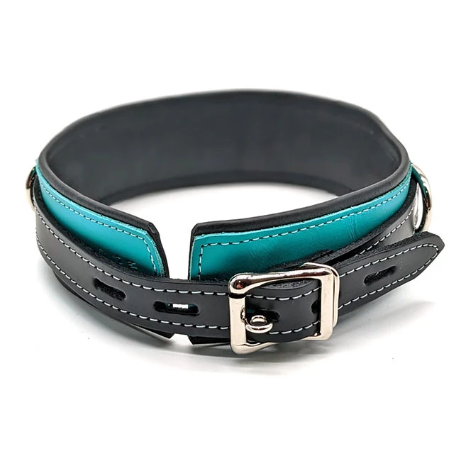 Leather Collar with Locking Buckle, Teal/Black