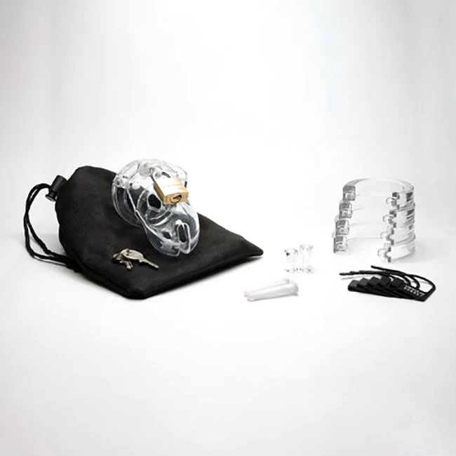 CB-X kits are made of medical grade polycarbonate material. The material is lightweight, hypoallergenic, and durable. The cage portion is vented for hygiene and has an opening allowing urination. The different size rings and spacers included in each package allow you to customize your fit to your individual needs. When used with a plastic lock, the entire cage is safe to be worn through metal detectors.
