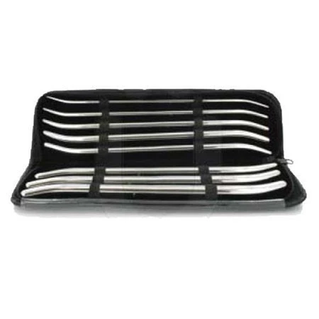 This set of eight Pratt Sounds, each 11.5″ long, are made of 316 surgical stainless steel. Each sound in the series is slightly larger than the one before, and slightly larger on one end than on the other, for a total of 16 sizes.