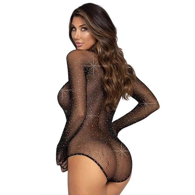 Rhinestone Fishnet Gloved Bodysuit w Snap Crotch 89271