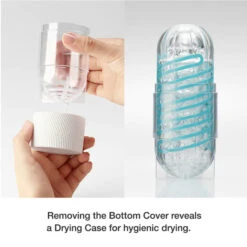 The Spinner is washable and reusable, with a helpful drying stand in the base of the cover. For even longer toy life, it can be helpful to manually dry the internal portion of the sleeve after washing using a lint-free cloth or paper towel.