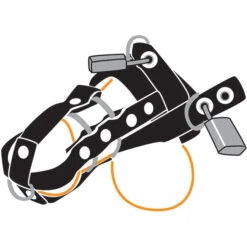 This leather cage features a nickel D-ring at the tip for weight or other attachments. 2 metal O-rings are positioned along the shaft, and serve as attachment anchors for the leather straps that run along the sides and top/bottom of the shaft. Straps around the base of the shaft and the balls are secured with buckles and a reinforced opening for locks.